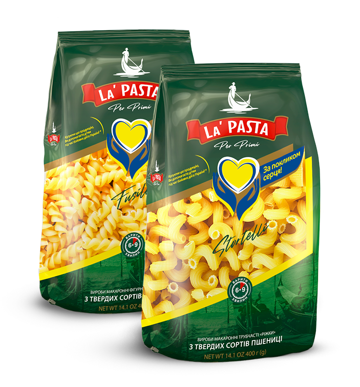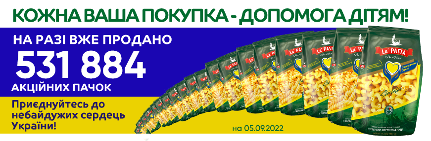 У період з 1 серпня 2022 року по 30 вересня 2022 року, одна гривня з продажу кожної пачці макаронних виробів Ріжки та Спіраль ТМ «La Pasta per primi» 400г та 420г, яка має благодійну відмітку «За покликом серця!», буде перерахована БФ “Kiddo” для підтримки та допомоги дітям під час війни в Україні.